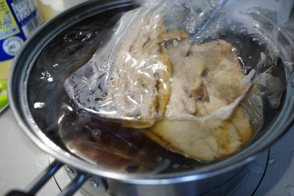 スープはなかなか冷凍された状態から溶けませんので、余裕を持って湯煎します。